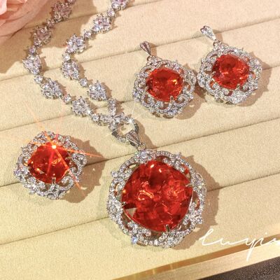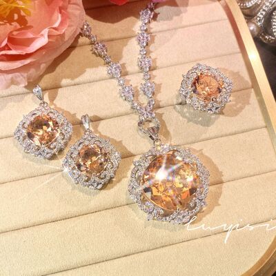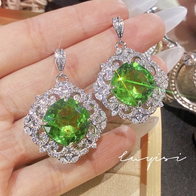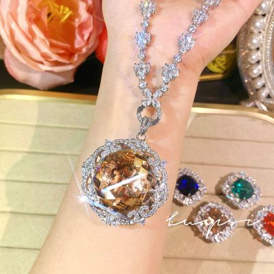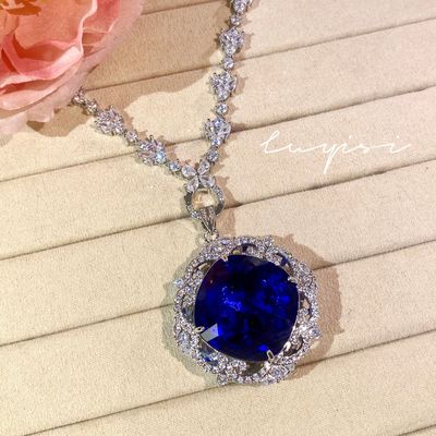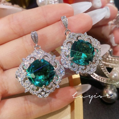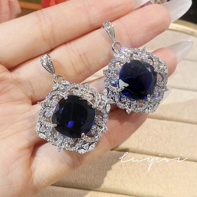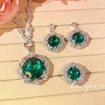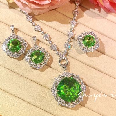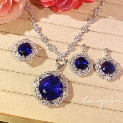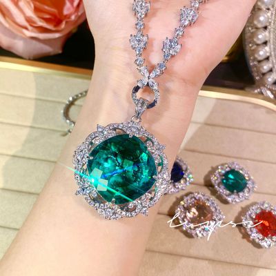 奢華滿鑽皇家藍藍寶石套鏈女禮服晚宴耳環氣質祖母綠戒指彩寶套裝