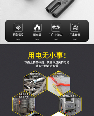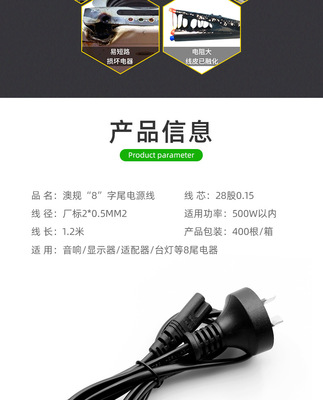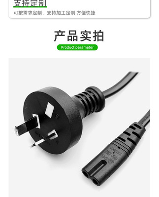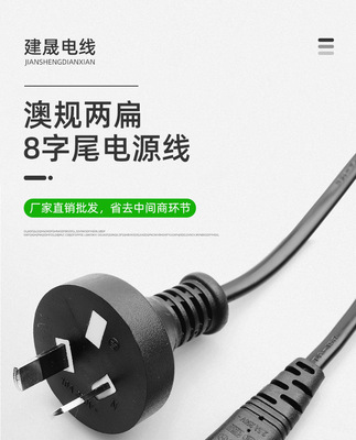 1.2-meter Australian standard two-prong plug 8-character tail power cord, 0.5 square copper-clad aluminum Australian standard power connection adapter plug cord