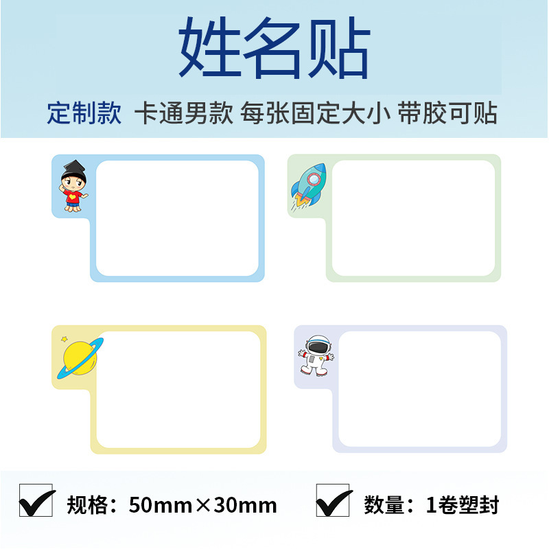 50*30mm卡通男生姓名貼(1卷)