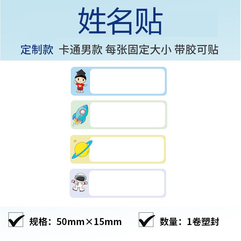 50*15mm卡通男生姓名貼(1卷)
