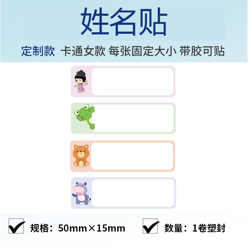 50*15mm卡通女生姓名貼(1卷)