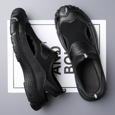 2023 summer new style cowhide mesh hollow shoes, one shoe, two wear cowhide sandals, one-shoe men's driving shoes