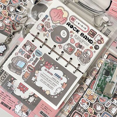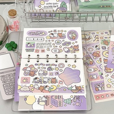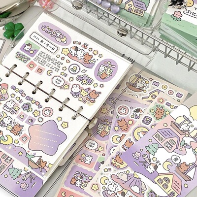 Cute cartoon doodle rabbit bear sticker Instagram Korean style goka handmade diary Christmas DIY decoration creative sticker