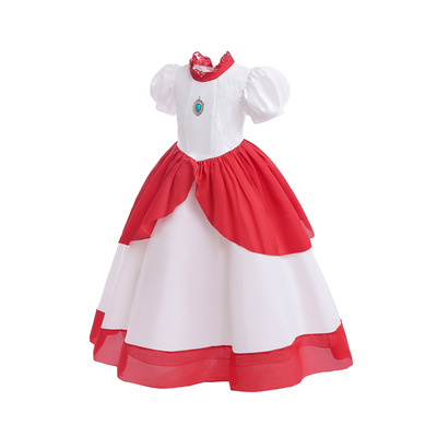 cosplay兒童馬里奧桃子公主裙 女童超級瑪麗蜜桃公主禮服裙表演服