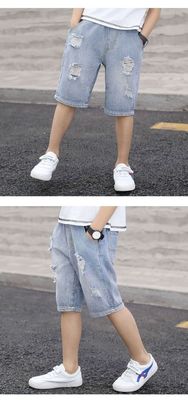 Boy's denim shorts summer thin 5-pocket pants children's distressed jeans boy's fashionable summer clothing pants drop shipping
