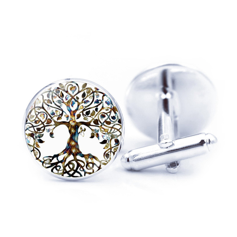 Men's Simple French Cufflinks Life Tree Time Gemstone Shirt Accessories Wholesale Silver Metal Accessories