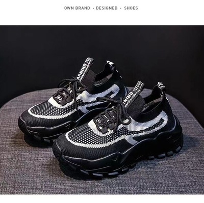 Ladies Dad Shoes 2023 Spring New Breathable Flyknit Running Sports Shoes Simple Comfort Thick-soled Women's Shoes