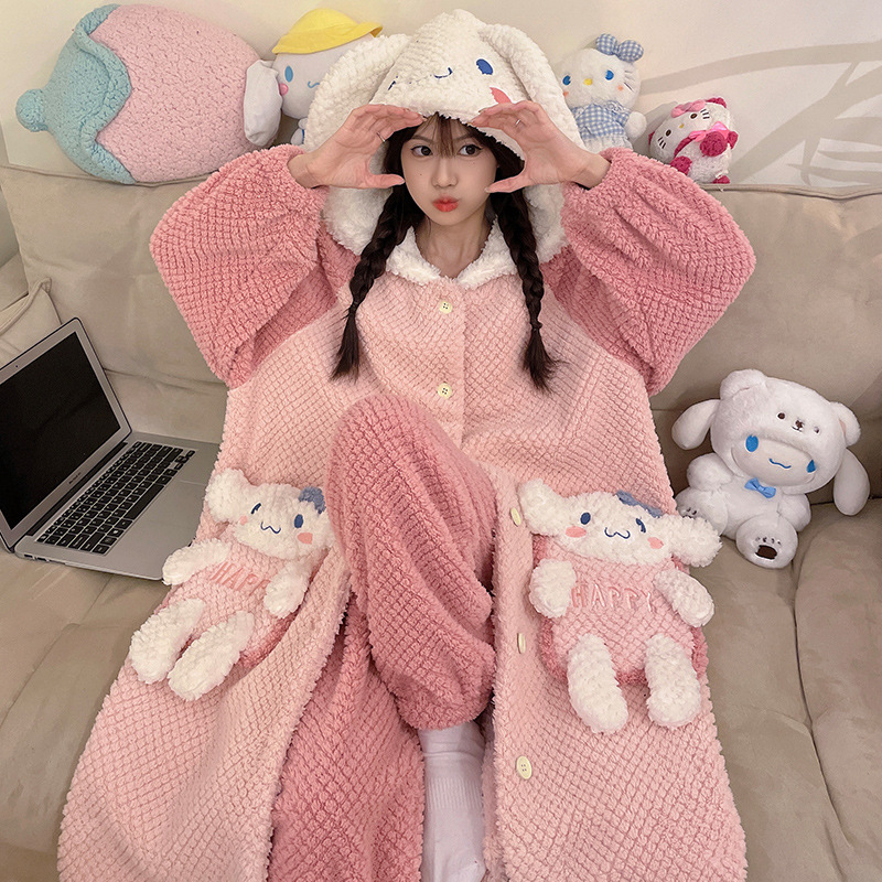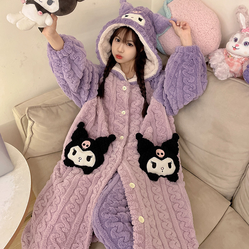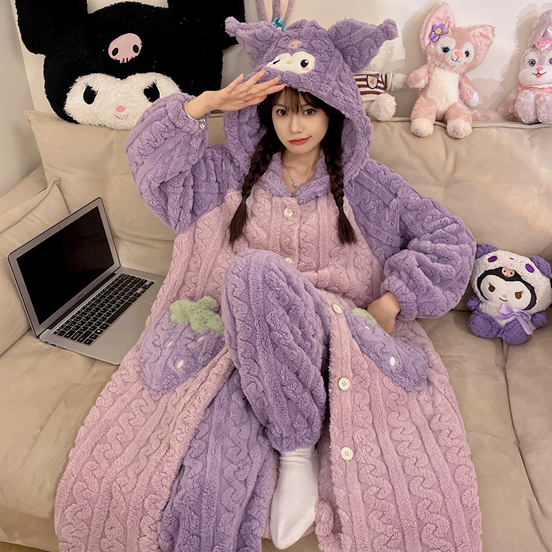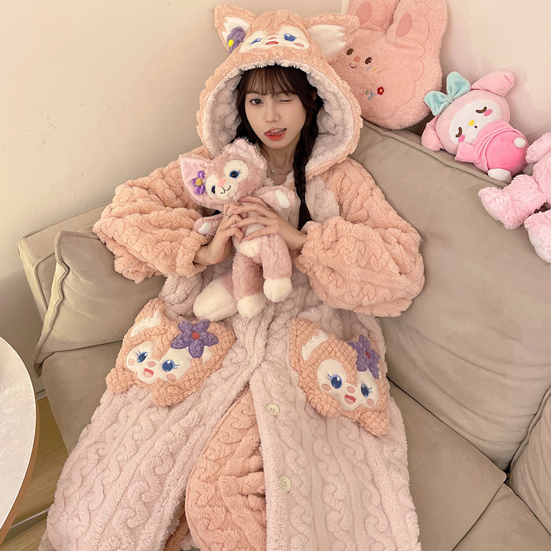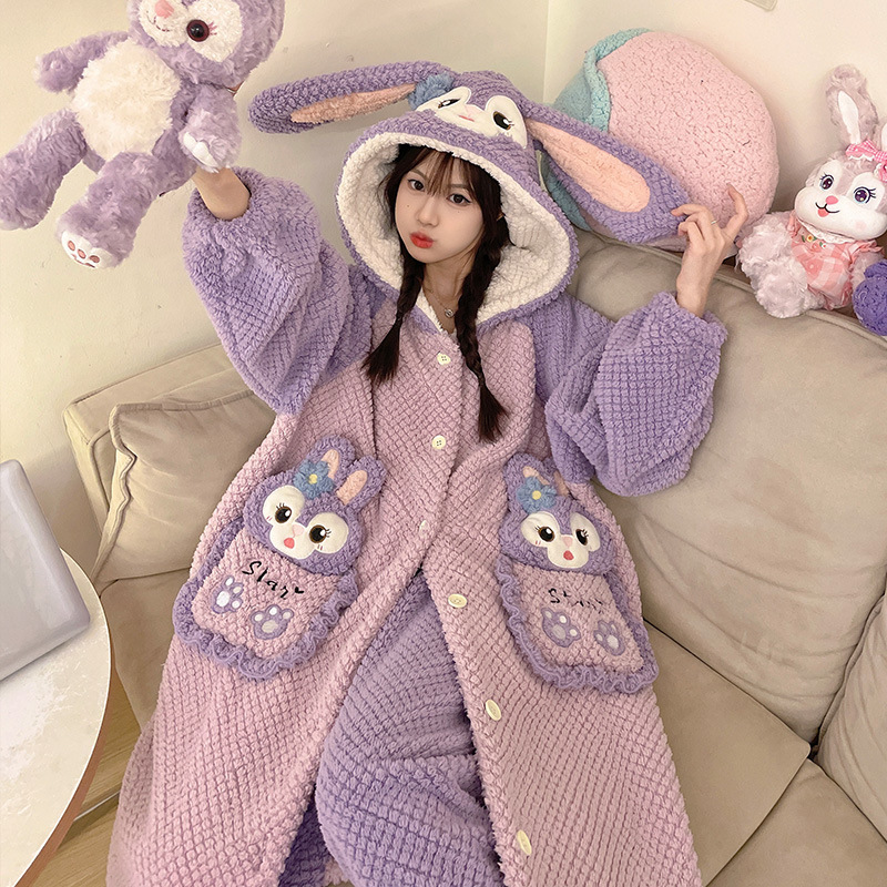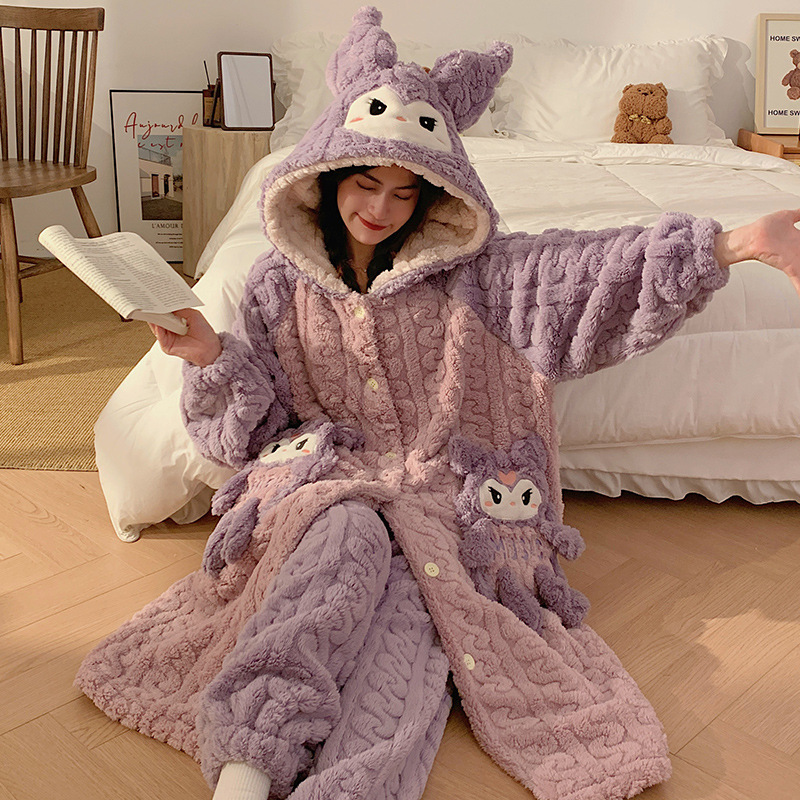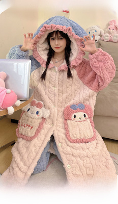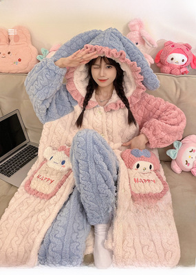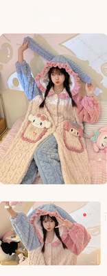 Ladies' Winter Coral Fleece Robe Set 2023 New Fleece Long Sleeve Thick Warm Homecoming Clothes