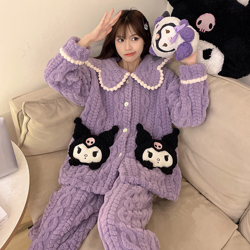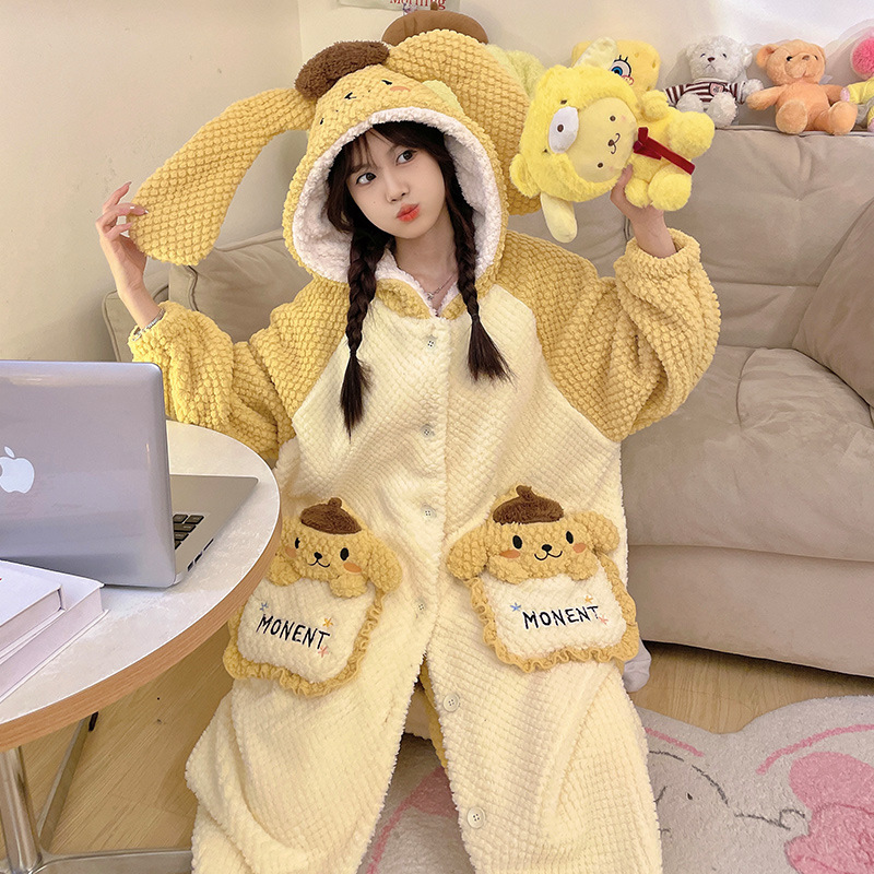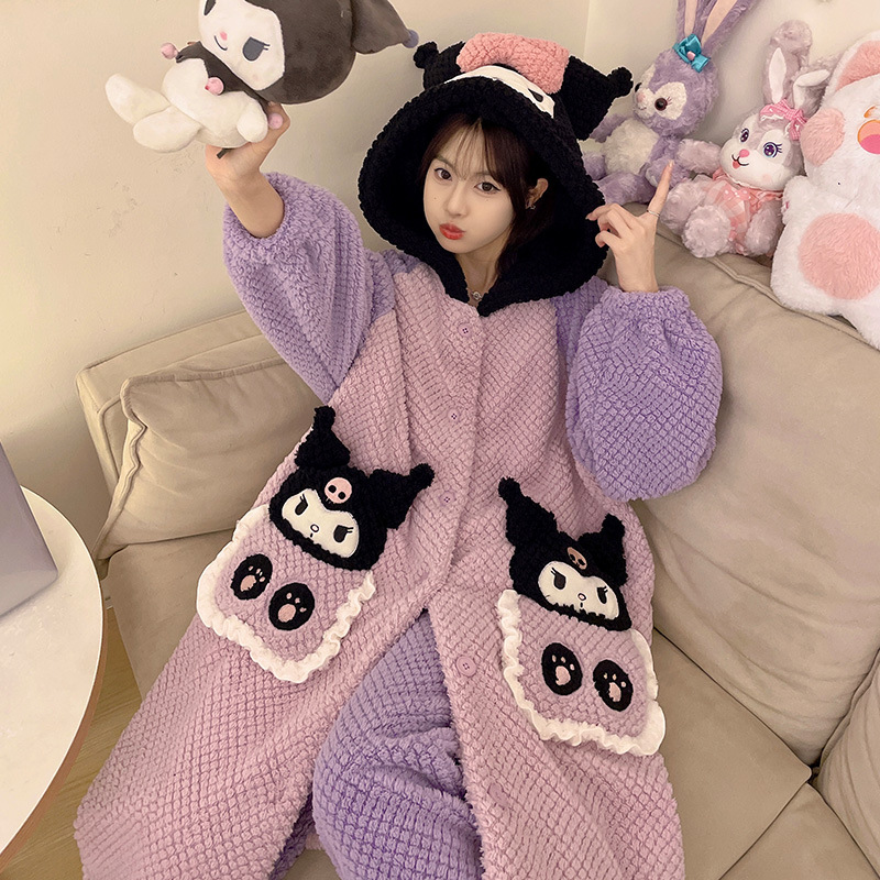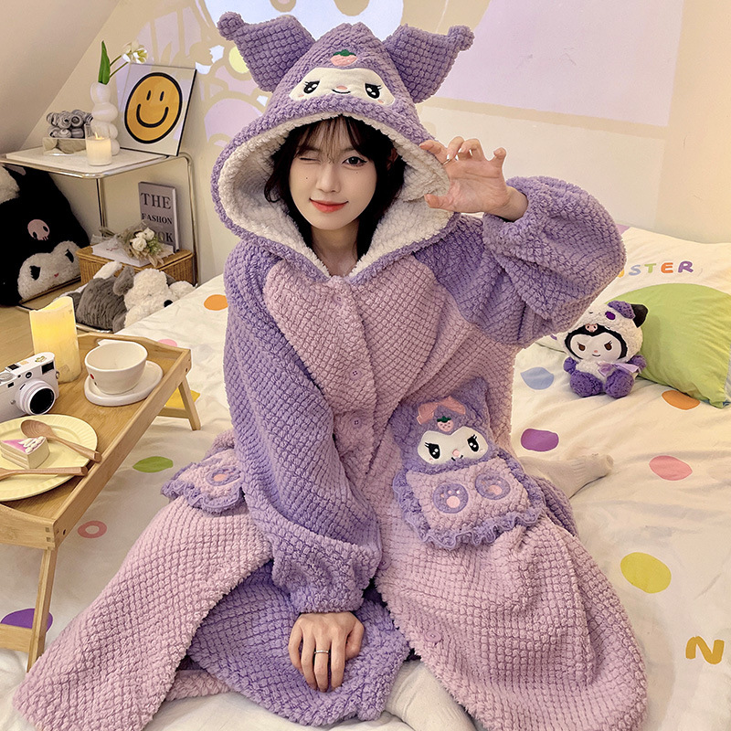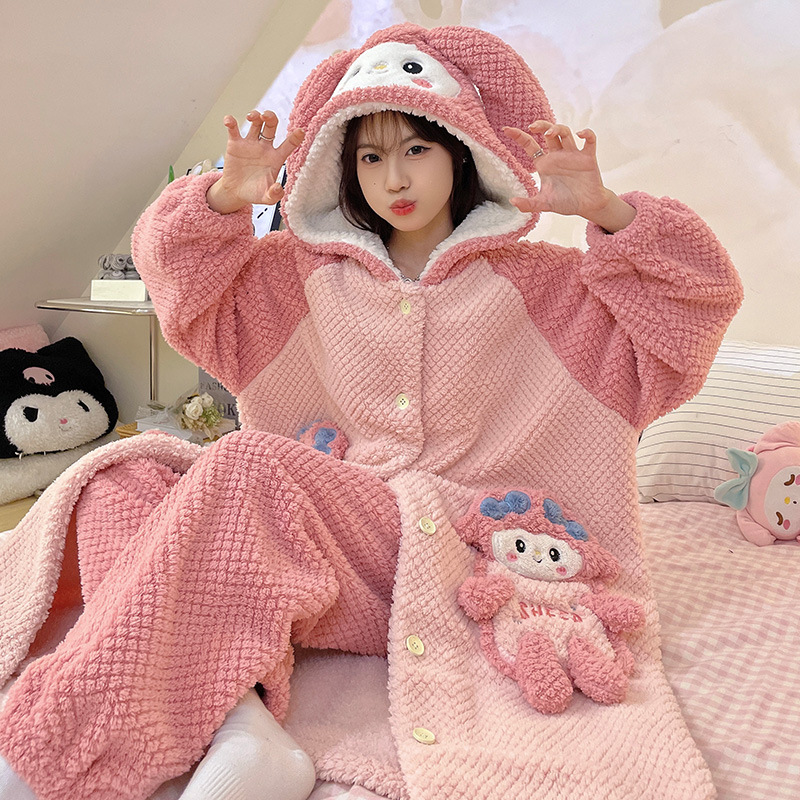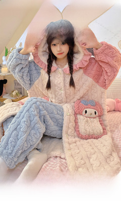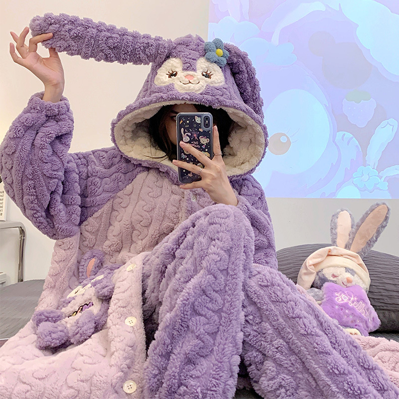 Ladies' Winter Coral Fleece Robe Set 2023 New Fleece Long Sleeve Thick Warm Homecoming Clothes