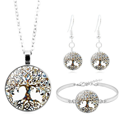 Tree of Life Time Gem Necklace Set—Cross-Border European and American Accessories, Fashionable & Unique Bracelet and Earring Jewelry Set