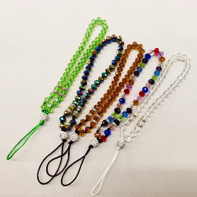 夏季時尚純手工編織亮水晶掛繩鑲鑽短款手機繩掛脖水鑽女款手鍊繩