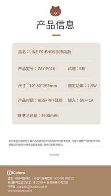 LINE FRIENDS布朗熊迷你便攜式隨身手持風扇廠家批發禮品一件代發