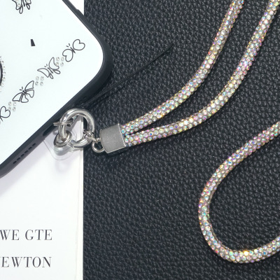 外貿水鑽掛繩新款圓扣證件掛繩長短款奢華滿鑽鏈子證件鑰匙鏈
