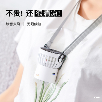 Mini small fan rechargeable portable carry-on neck lazy person USB neck strap head neck handheld silent