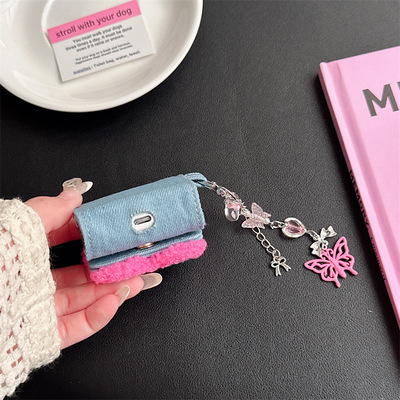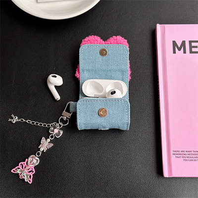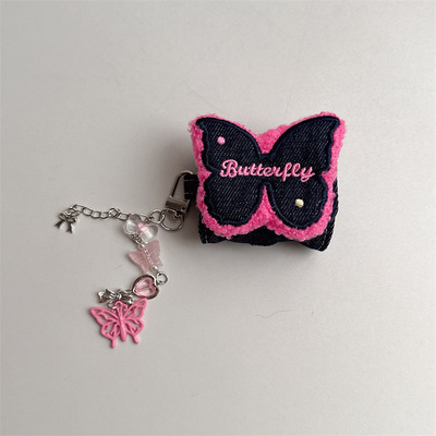 Japanese and Korean Personalized Denim Embroidered Butterfly Apple AirPods 1/2 Bluetooth Earphones Pro Case 3 Compatible Chain