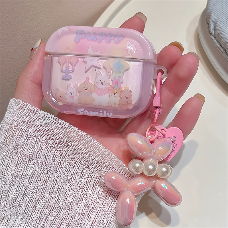 粉色卡通小狗掛墜AirpodsPro2耳機殼適用蘋果2/3代無線藍牙保護套