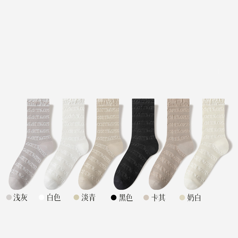 純棉襪子女士網眼透氣吸汗堆堆襪春夏薄款中筒防臭日系白色JK女襪