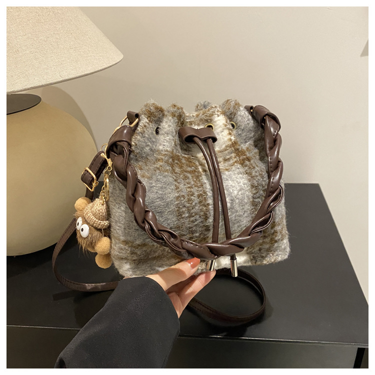 格子抽帶水桶小包包女2024秋冬新款時尚單肩包外貿跨境代發斜挎包