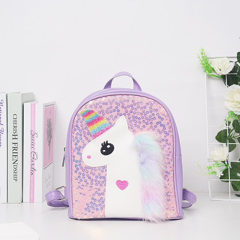 廠家直銷新款格利特彩虹散粉可愛獨角獸學生書包亮片五角星掛件包