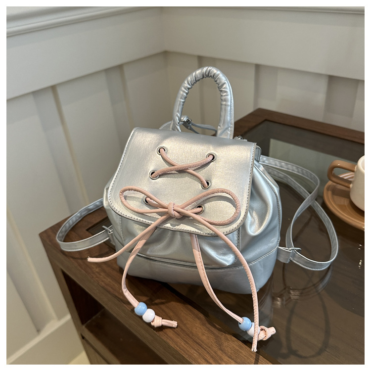 2024新款少女可愛背包學生輕便旅遊背包芭蕾風蝴蝶結雙肩包包女士