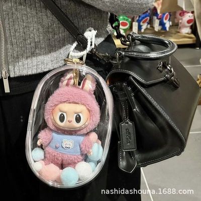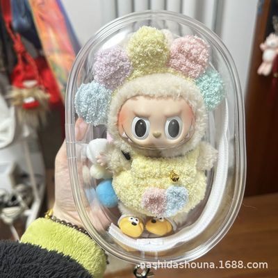 Labubu Latex Doll with Cotton Filling, Outdoors Bag 15cm Pain Bag, Dustproof and Sun Protection Doll Bag 10cm