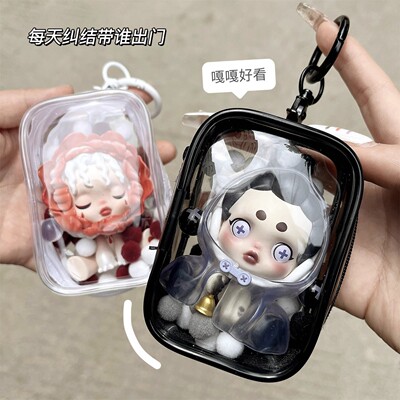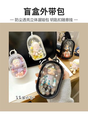 泡泡瑪特遛娃包棉花娃娃包透明pvc便攜外出展示立體娃娃盲盒收納