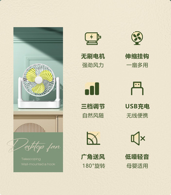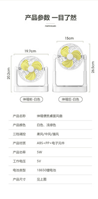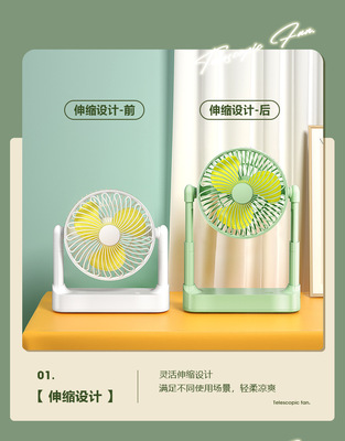 2024新款伸縮風扇桌面家用USB充電小風扇學生宿舍辦公大風力風扇