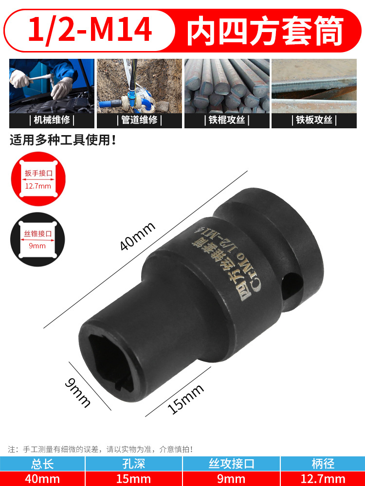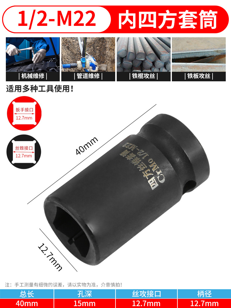 Square tap wrench set, 1/2 inch, internal square hole wrench, air wrench, two-end square tap head adapter