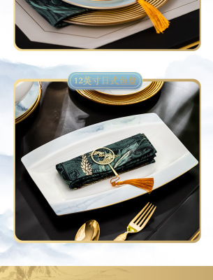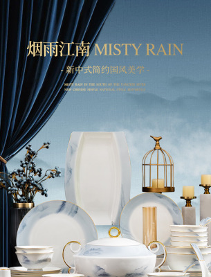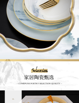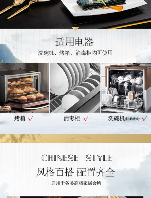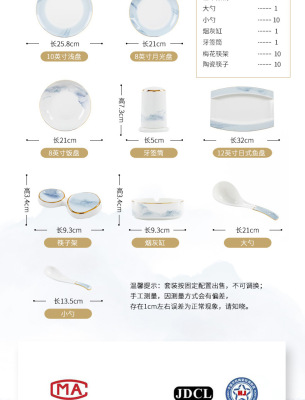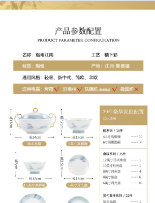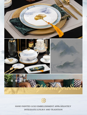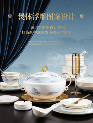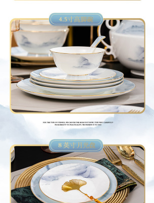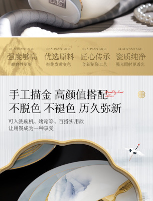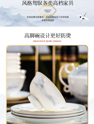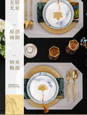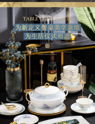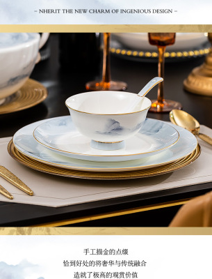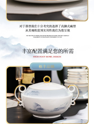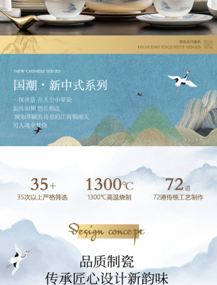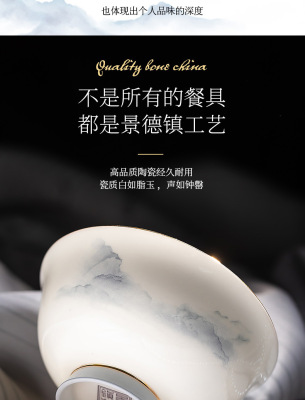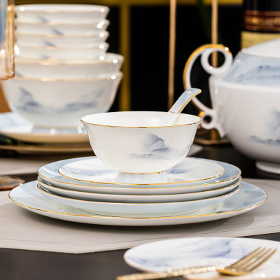 中式簡約高檔國風碗具景德鎮輕奢釉下彩碗碟家用骨瓷餐具酒店會所