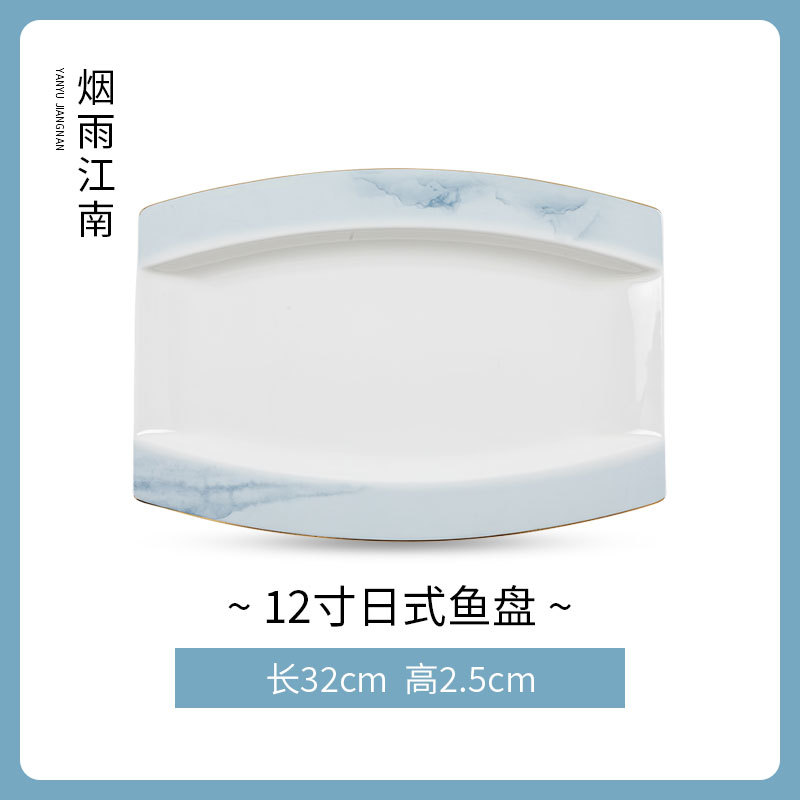 規格:煙雨江南(12英寸魚盤)