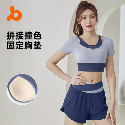 Summer new short color-blocked sports fitness yoga fake two-piece yoga clothing set