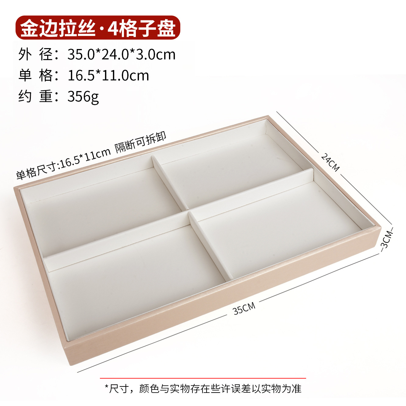 Gold edge inner white 4-grid plate