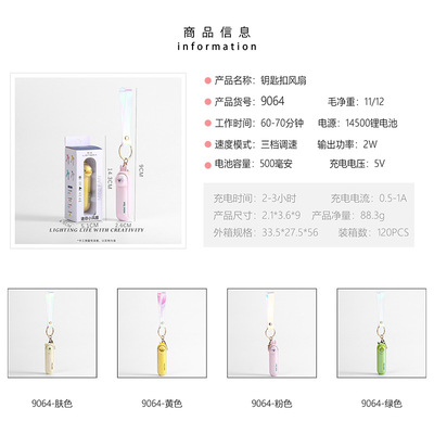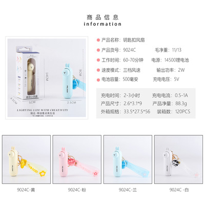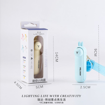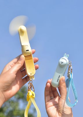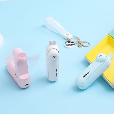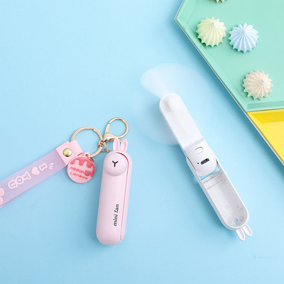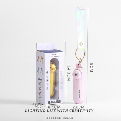 Animal-shaped keychain fan with foldable hidden blade switch, outdoor portable handle rope clip fan supply