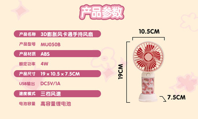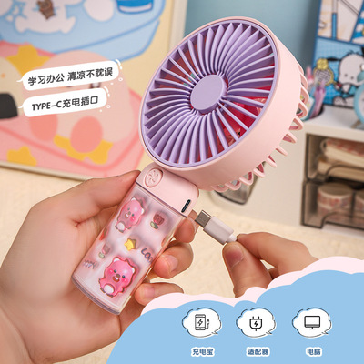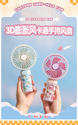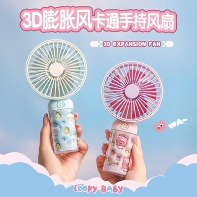 Cross-border fan new 3D cartoon handheld fan mini portable USB charging office desktop fan gift