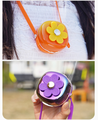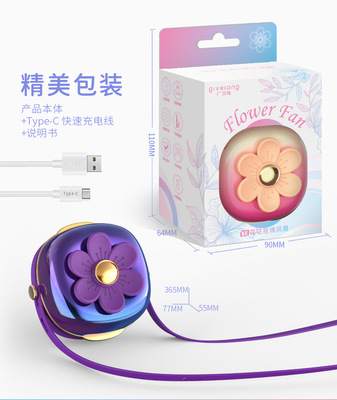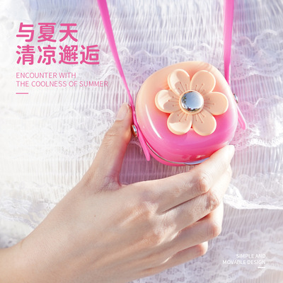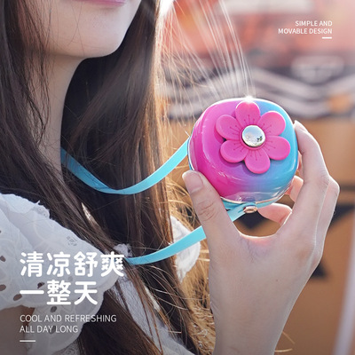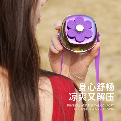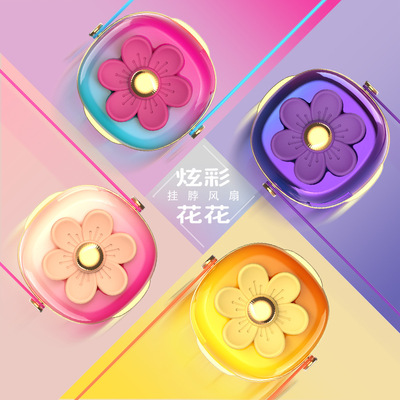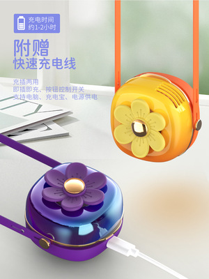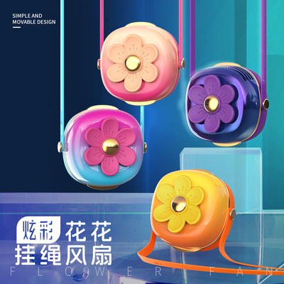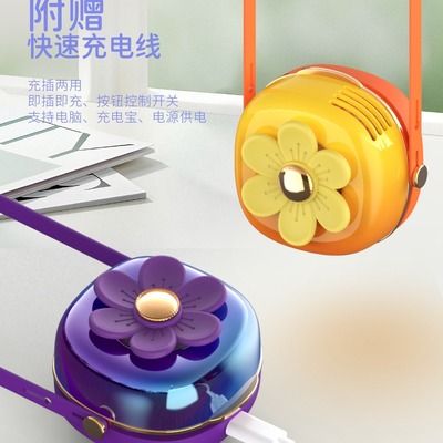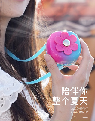 夏天新品清新花花掛繩充電小風扇USB迷你學生戶外便攜式掛脖