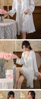 Women's Spring Silk Slip Dress with Pajama Top and Bralette, Ice Silk Court Style Sleepwear Set with Outerwear Pajamas