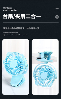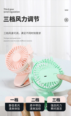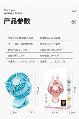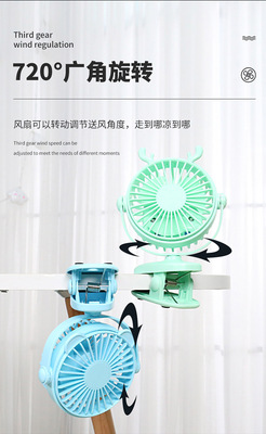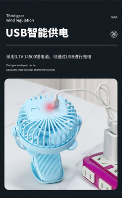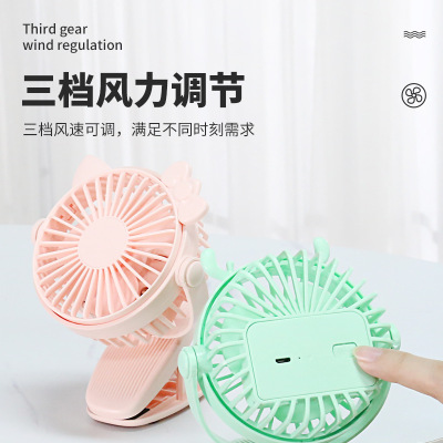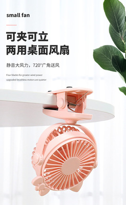 Creative Mini Clip Fan with USB Charging, Portable Desktop Office Baby Stroller Fan with Colorful Lights