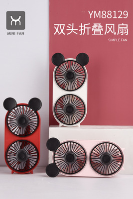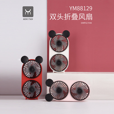 Student Cool Summer Dual-Head USB Charging Fan Portable Mini Handheld Fan Desk Office