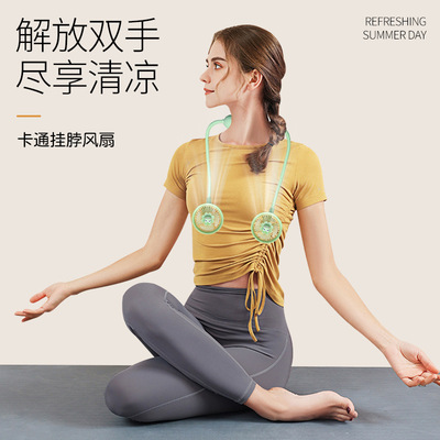 Cross-border mini portable neck fan USB charging lazy person neck sports small foldable electric fan