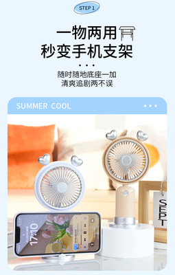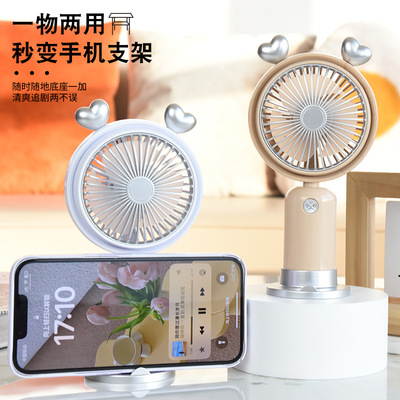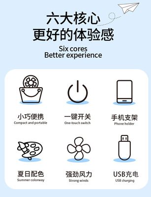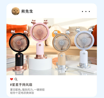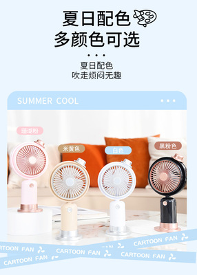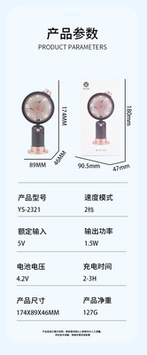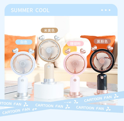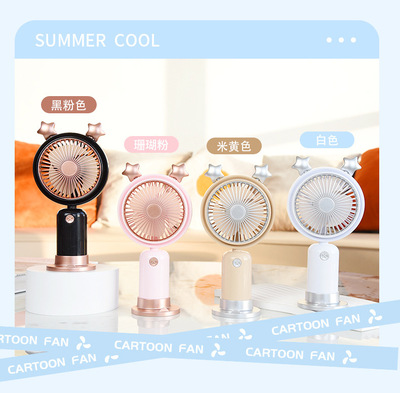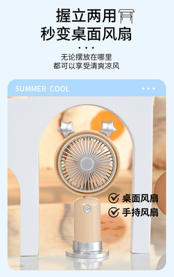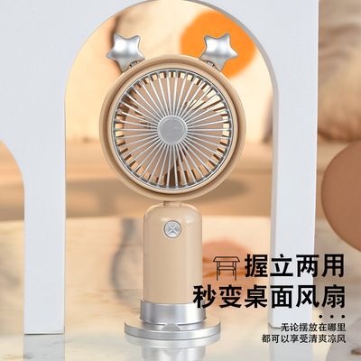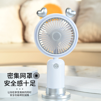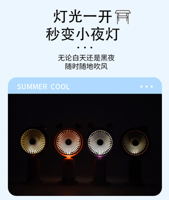 跨境熱銷USB手持風扇戶外便攜靜音二檔夜燈小風扇帶底座桌面風扇