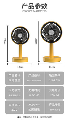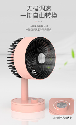 源頭廠家跨境熱銷桌面伸縮風扇USB充電簡約台式升降無刷風扇禮品