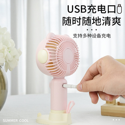 Cross-border best-selling new cartoon cute handheld fan with base USB mini outdoor portable lanyard fan