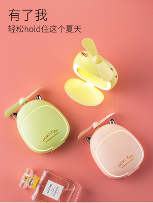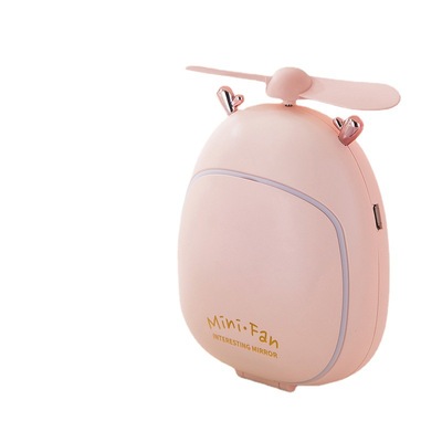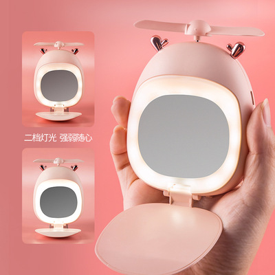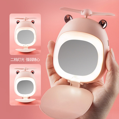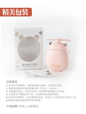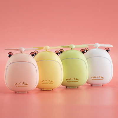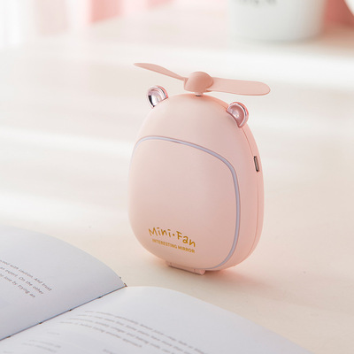 Mini Portable Handheld Beauty Mirror Fan, Cute Bear and Deer USB Charging Fan Mirror with LED Light