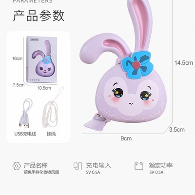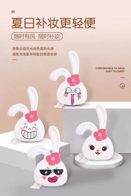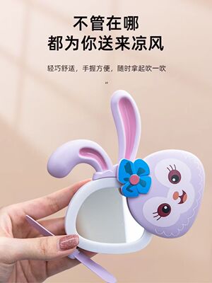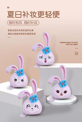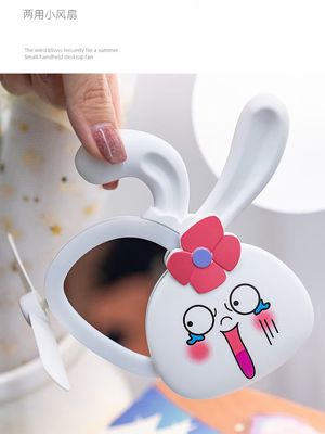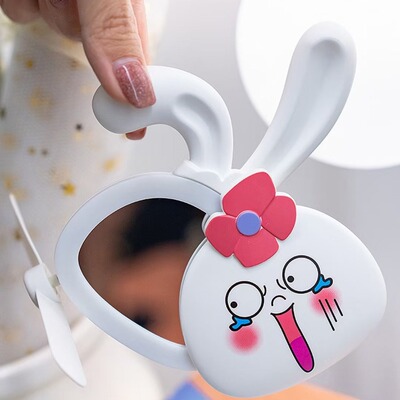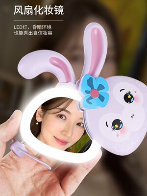 網紅ins少女心萌兔化妝鏡風扇 迷你便攜式USB充電小風扇LED補光燈