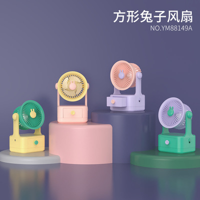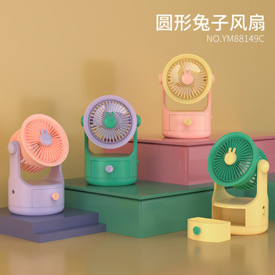New Rabbit Round Creative Storage Desktop Fan Mini Tabletop Square Teddy Bear Portable Charging Small Fan