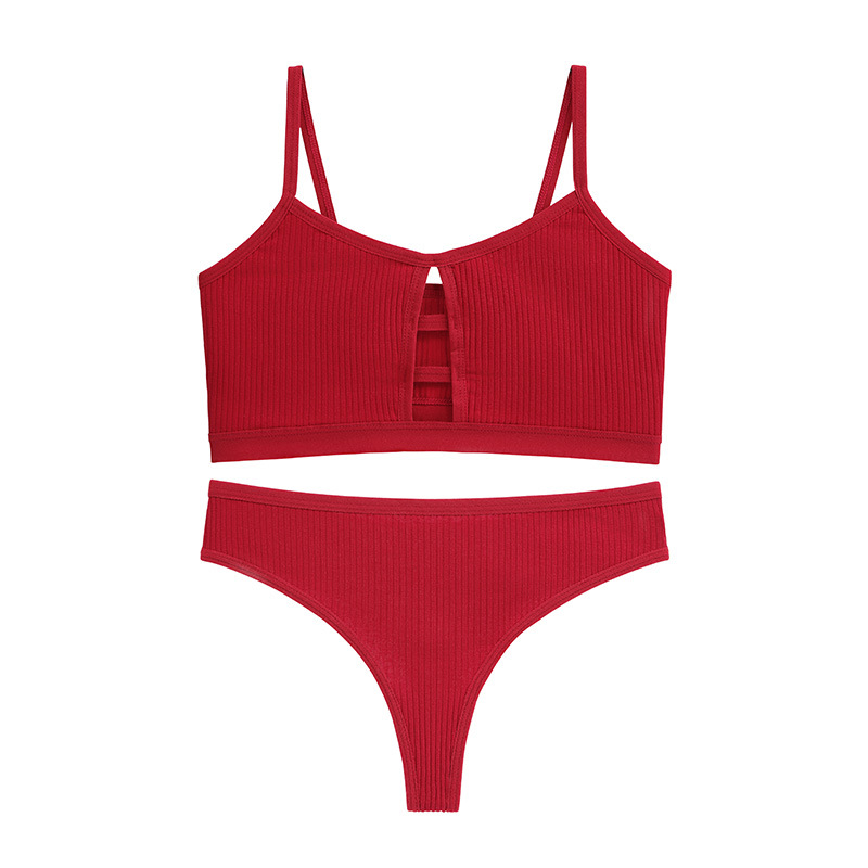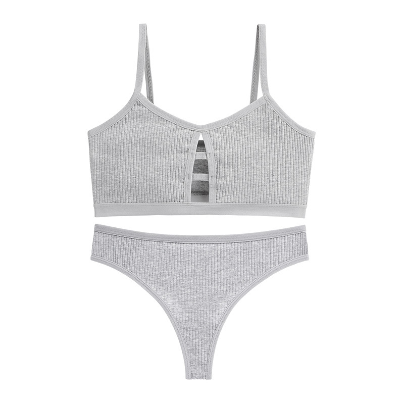 French underwear women's push-up large size bra threaded cotton sports yoga camisole sexy triangle underwear set