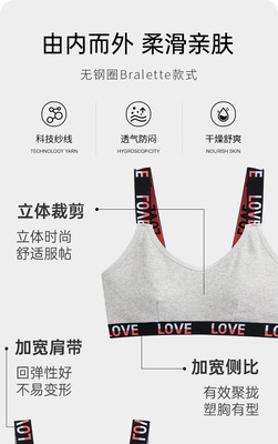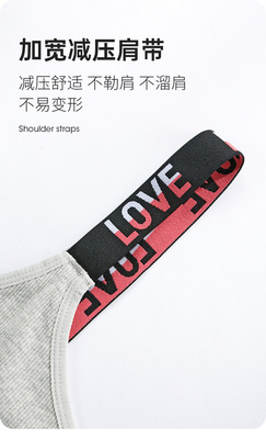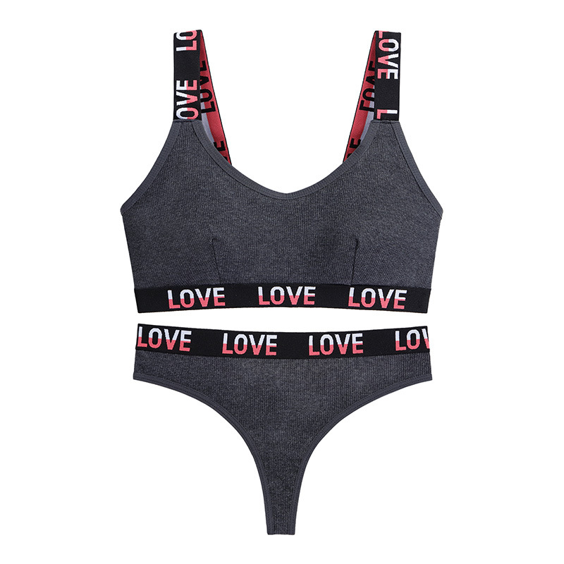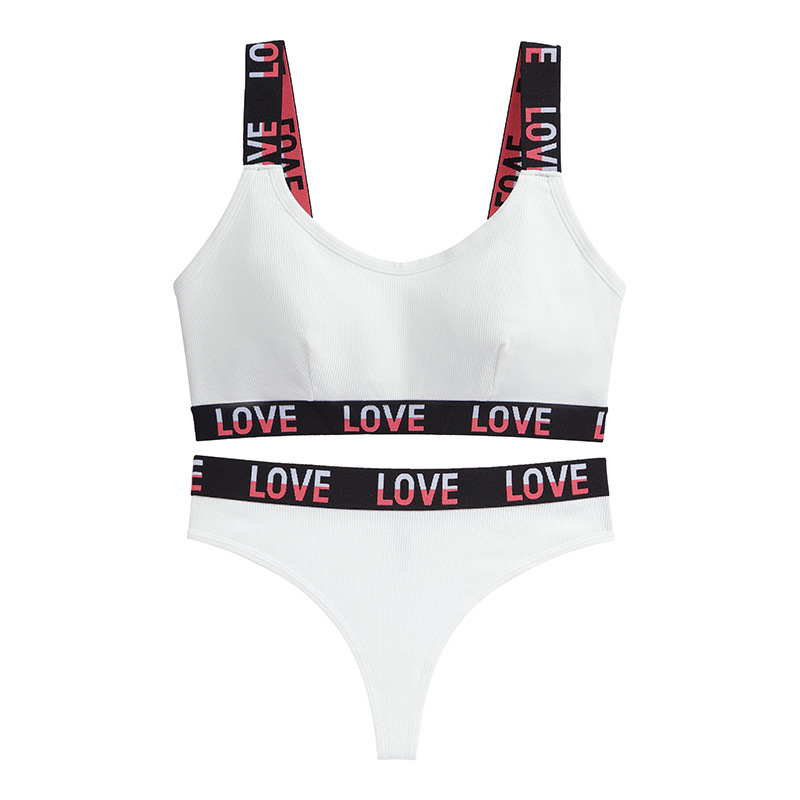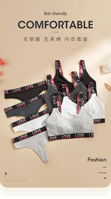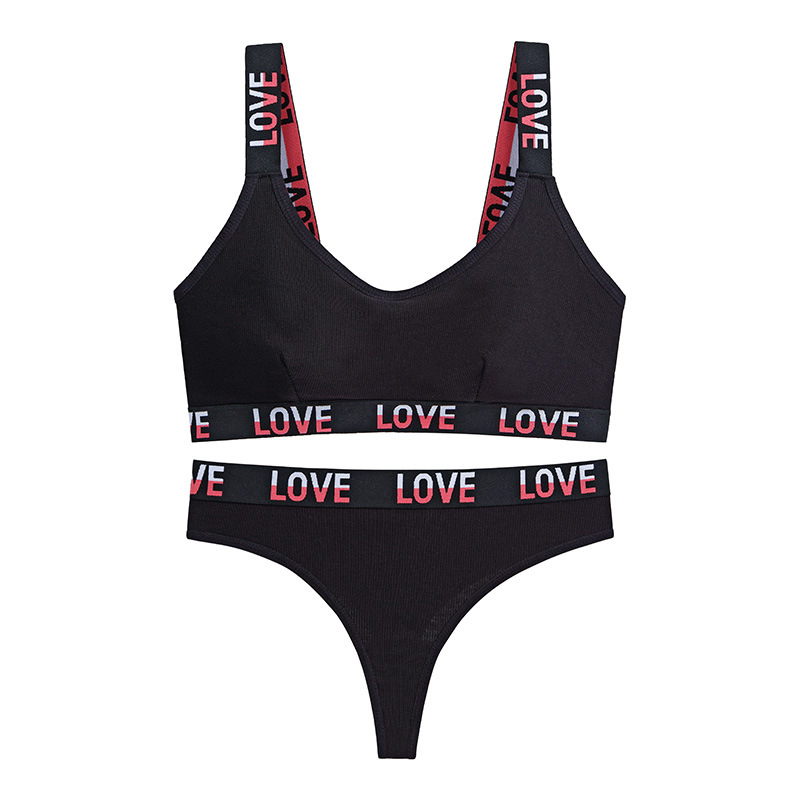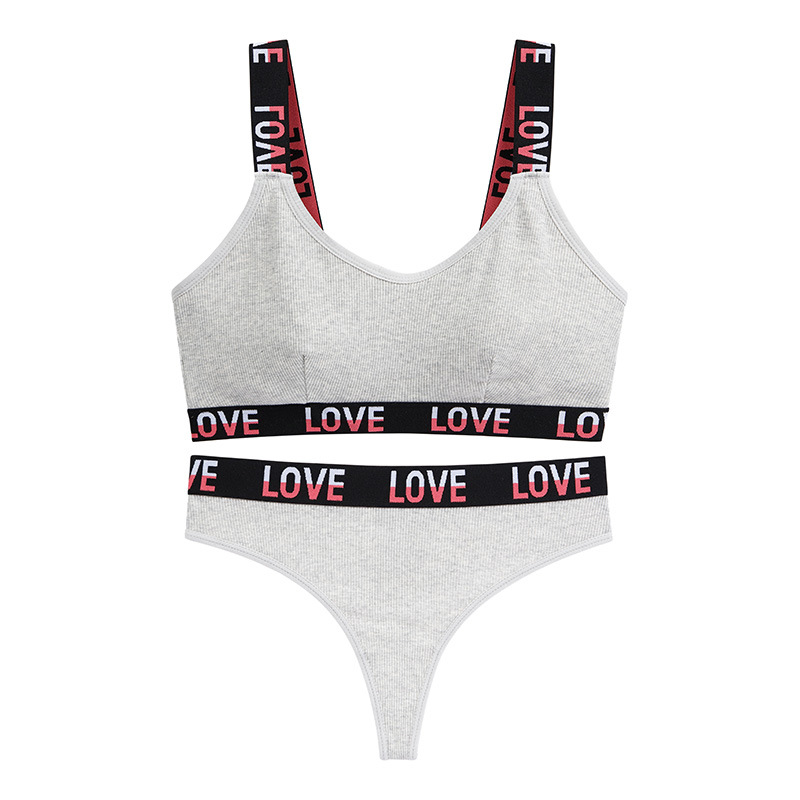 European and American fashion contrasting letter print women's bra breathable pure cotton deep V sports style vest thong set