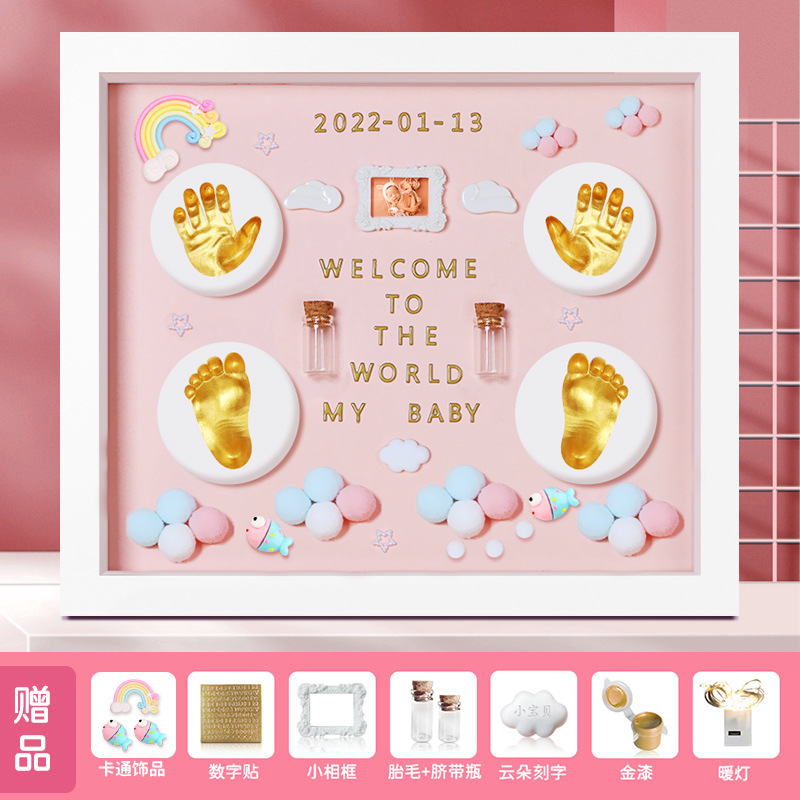 Baby full moon commemorative hand and foot prints, one-year-old hand prints and footprints, baby's 100-day hand and foot prints mud photo frame, newborn lanugo
