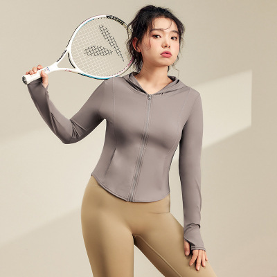 Large size nude yoga jacket for women in autumn and winter plus velvet slim sports long-sleeved fat mm running fitness wear