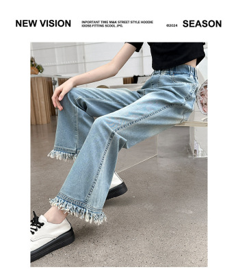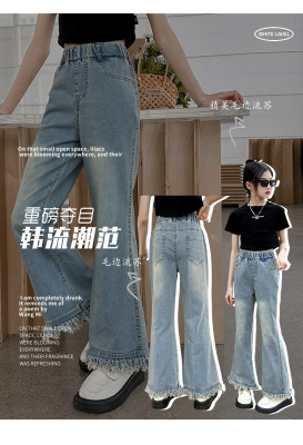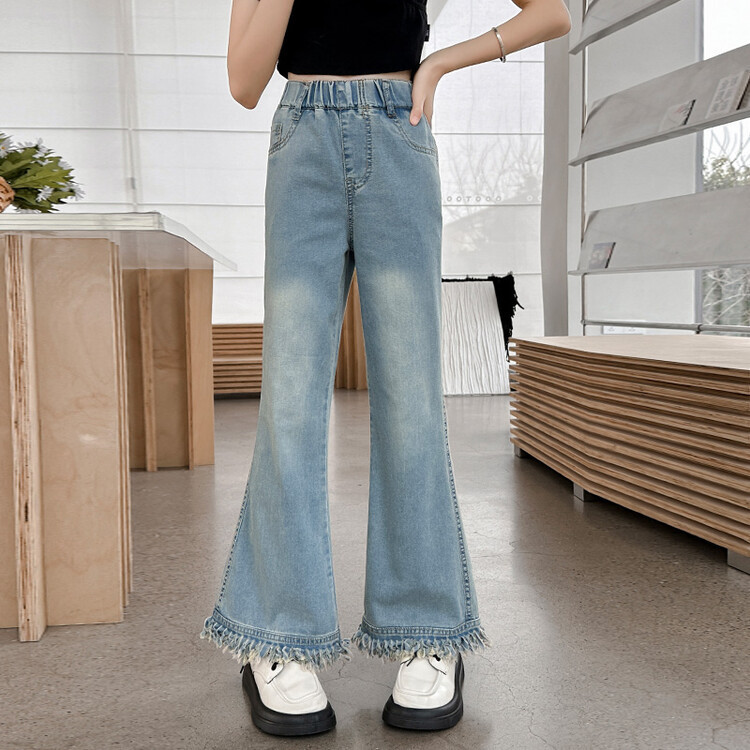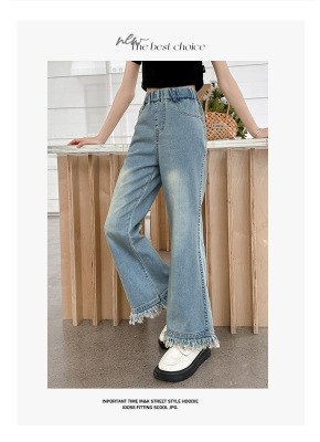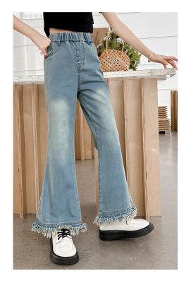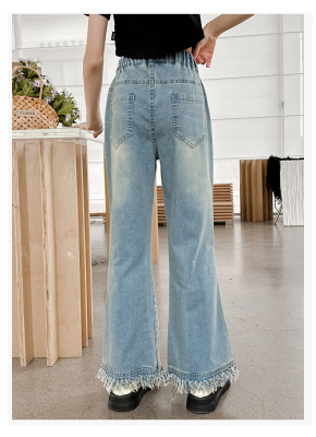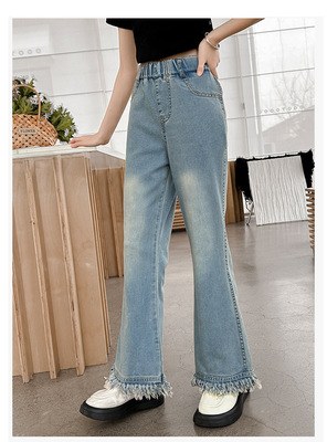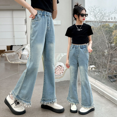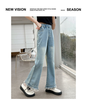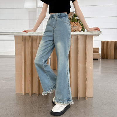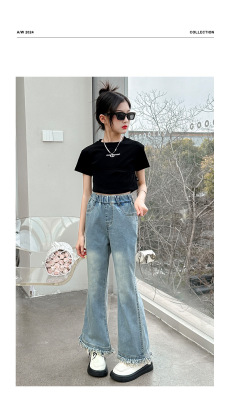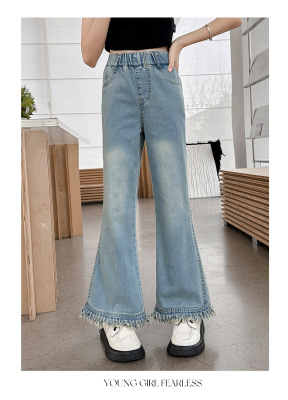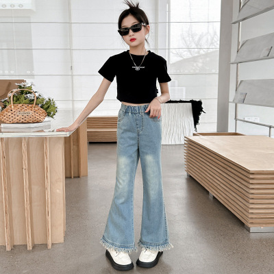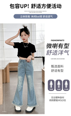 Girls' big children's pants summer style 2024 new Korean version slim fashionable thin flared pants casual versatile jeans trend